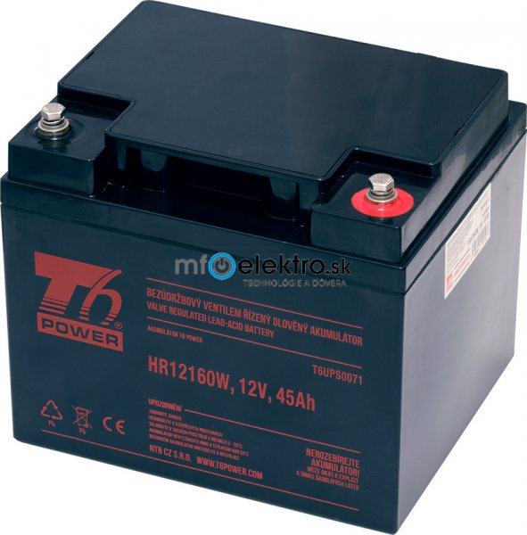 Batéria do záložného zdroja Akumulátor T6 Power HR12160W, 12V, 45Ah, High Rate životnost 10-12 let