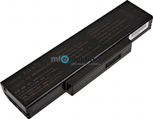 Typ: Li-ion Kapacita: 4600 mAh (51 Wh) Barva: černá Napětí: 11.1 V Rozměry: 205x53x20 mm Hmotnost: 350 g Produktová čísla: 70-NX01B1000Z, 70-NZY1B1000Z, 70-NZYB1000Z, 90-XB2KN0BT00000Y, A32-K72, A32-N71 Kompatibilní modely: Asus A72 serie, Asus A72D, Asus A72F, Asus A72J, Asus A72JK, Asus A72JR, Asus A73 serie, Asus A73SD, Asus A73SM, Asus A73SV, Asus A73TK, Asus K72 serie, Asus K72D, Asus K72DR, Asus K72E, Asus K72F, Asus K72F, Asus K72J, Asus K72JK, Asus K72JR, Asus K72JT, Asus K72JU, Asus K73 serie, Asus K73E, Asus K73S, Asus K73SV, Asus N71 serie, Asus N71JA, Asus N71JG, Asus N71JQ, Asus N71JV, Asus N71VG, Asus N71VN, Asus N73 serie, Asus N73JF, Asus N73JN, Asus N73JQ, Asus N73SV, Asus Pro72A, Asus Pro72Q, Asus Pro72SL, Asus Pro78JQ, Asus X72 serie, Asus X72D, Asus X72DR, Asus X72F, Asus X72JK, Asus X72JR, Asus X72SA, Asus X72V, Asus X72VM, Asus X72VN, Asus X72VR, Asus X72VR, Asus X73 serie, Asus X73B, Asus X73BE, Asus X73BR, Asus X73E, Asus X73SD, Asus X73SJ, Asus X73SM, Asus X73SV, Asus X73TA, Asus X73TK, Asus X77 serie, Asus X77JQ, Asus X77VN, Asus X7AJT, Asus X7BJG, Asus X7BSV