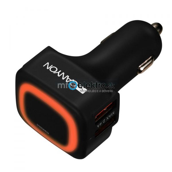Táto autonabíjačka je šampiónom v počte USB konektorov! Bola vyvinutá pre nadšencov digitálnych hračiek a dokáže obslúžiť až 4 zariadenia súčasne. Všetky 4 USB porty sú štýlovo umiestnené po stranách, pričom sú zvýraznené LED podsvietením. Autonabíjačka poskytuje optimálne nabíjanie pre smartfóny, tablety, Bluetooth reproduktory a ďalšie prenosné zariadenia vybavené USB portom. Venujte sa výhradne šoférovaniu svojho auta a neobávajte sa znaku vybitej batérie na Vašich zariadeniach!