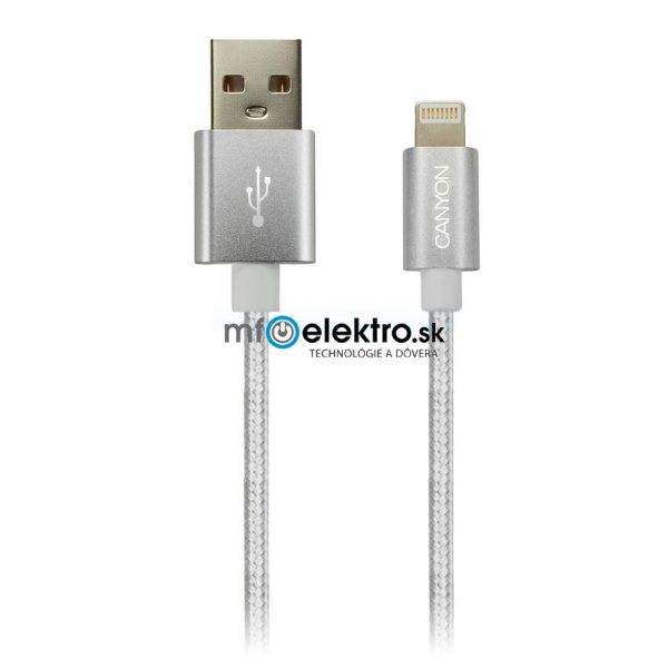USB kábel Canyon CNE-CFI3PW, 1m kábel Lightning/USB, bez Apple certifikácie MFi, opletený, perleťovo-biely