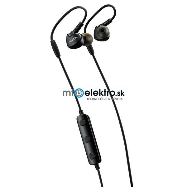 Slúchadlá do uší s mikrofónom Canyon CNS-SBTHS1B Bluetooth slúchadlá do uší pre športovcov, integrovaný mikrofón a ovládanie, háčik za ucho, čierne