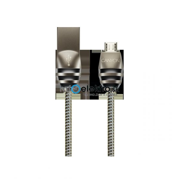 Canyon CNS-USBM5DG, 1m kábel micro-USB / USB 2.0, 5V/2A, priemer 3,5mm, metalicky opletený, tmavo-šedý
