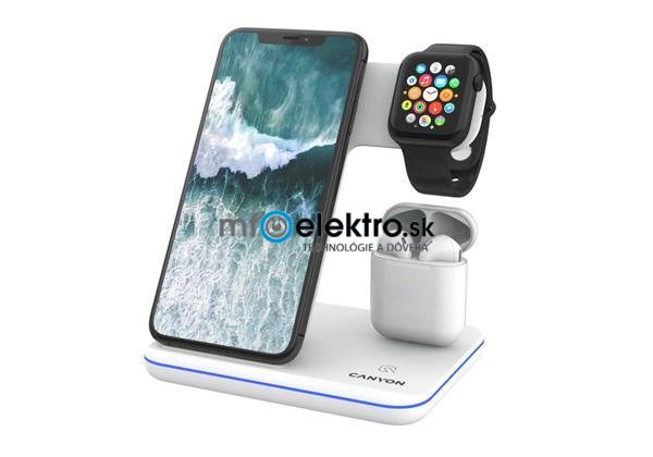 Nabíjačka na mobil Canyon CNS-WCS302W, 3v1, bezdrôtová Qi nabíjacia stanica pre 3 zariadenia simultánne, biela