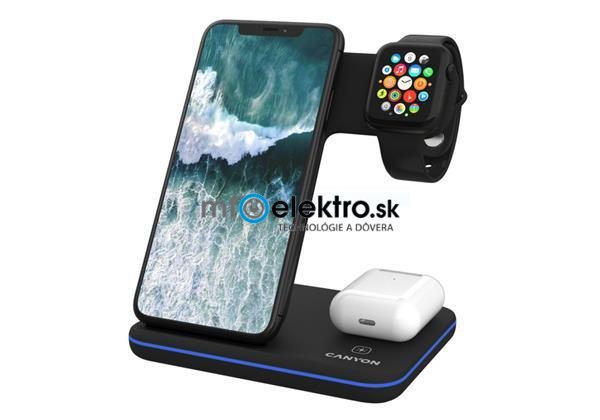 Nabíjačka na mobil Canyon CNS-WCS303B, 3v1, bezdrôtová Qi nabíjacia stanica pre 3 zariadenia simultánne, čierna