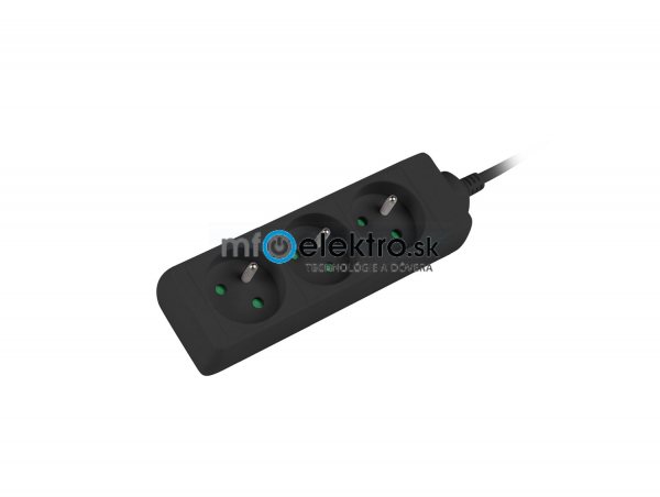 Technické parametry: Počet zásuvek: 3 Délka kabelu: 3 m Max. zatížení: 2500 W / 10A Vypínač napájení: Ne Jištění: Ne Specifikace kabelu: 3x 1,0mm CU Třída voděodolnosti: IP20 Typ zástrčky: Uni-Schuko Barva: černá