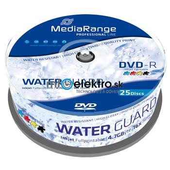 MEDIARANGE DVD-R 4,7GB 16x Waterguard Photo Inkjet Fullprintable spindl 25pck/bal