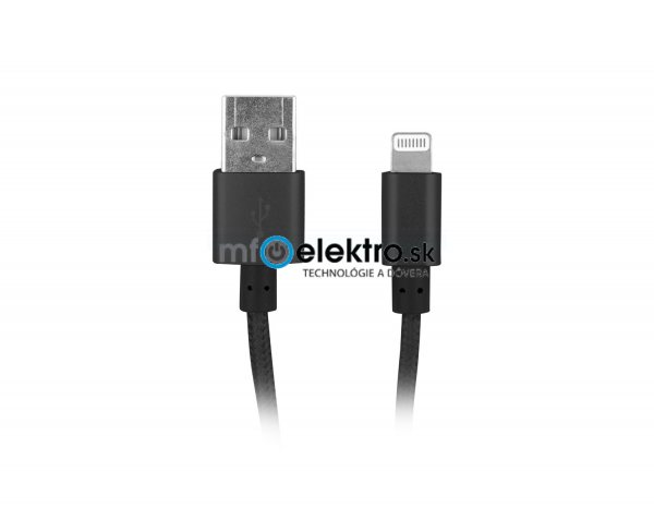 Technické parametry *Konektory: Lightning (Apple), USB typu A *Délka kabelu: 150 cm *Barva: černá *Přenosová rychlost: 480 Mb/s *Obal kabelu: nylonové opletení *Brutto hmotnost: 30 g *USB verze: 2.0