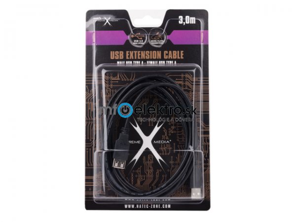 USB kábel Natec USB-A M/F 2.0 kabel 3m, černý, blister