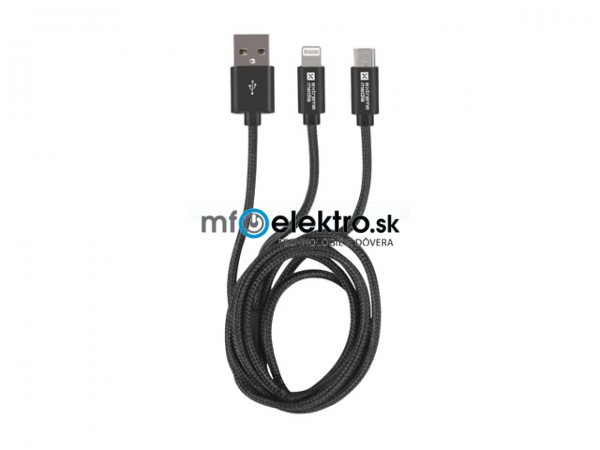 Technické parametry *Konektory: Lightning (Apple), Micro USB, USB Type-A *Délka kabelu: 100 cm *Barva: černá *Přenosová rychlost: 35 Mb/s, 480 Mb/s *Úhlová spojka: Ne *Kabel: opletený kabel *USB verze: 2.0 *Hmotnost: 48 g