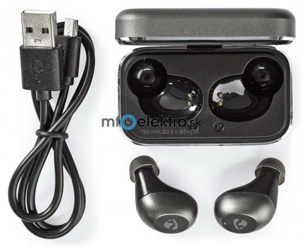 Bezdrôtové slúchadlá NEDIS bezdrátová sluchátka + mikrofon/ TWS/ BT/ 99 dB/ výdrž 3 hodiny/ hlasové ovládání/ nabíjecí pouzdro/ šedé