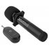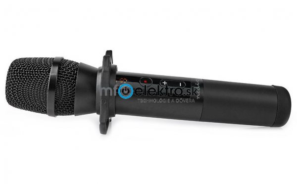 Základem každé skvělé karaoke párty je bezdrátový mikrofon, který poskytuje dostatečnou volnost v pohybu. Pro správnou funkci mikrofonu stačí pouze připojit bezdrátový přijímač s konektorem 6,35 mm jack do mikrofonního vstupu jakéhokoli reproduktoru a synchronizace již proběhne po zapnutí obou zařízení automaticky. Díky možnosti výběru z 20 frekvenčních kanálů zajistí kvalitní přenos bez zkreslení do vzdálenosti až 50 m. LCD displej zobrazuje informace o síle signálu, úrovni hlasitosti či stavu baterie. Mikrofon je napájen dvěma AA bateriemi a vydrží až 10 hodin v provozu. Přijímač k napájení využívá další dvě AA baterie. Součástí balení je také praktický stojánek a pop filtr.