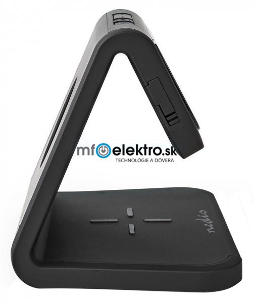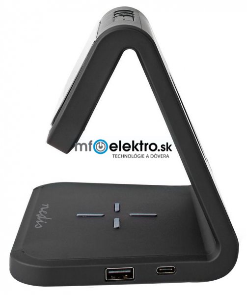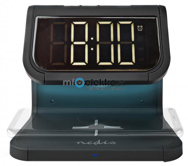 NEDIS budík/ bezdrátová nabíječka/ Qi certifikace/ vícebarevné noční svítidlo/ 5VDC/9VDC/ 1.0A/1.1A/ USB/ černý
