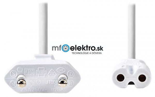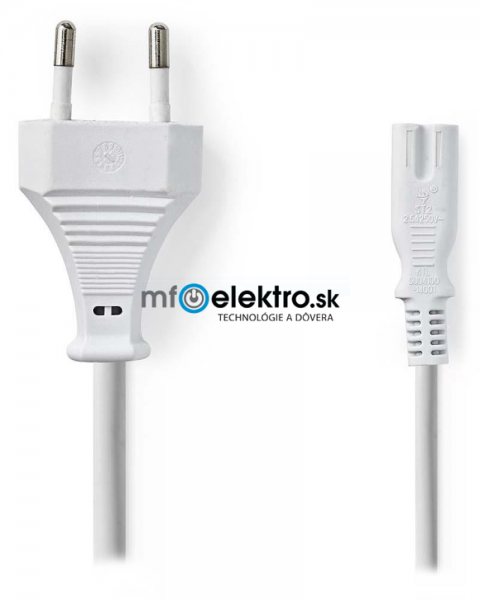Napajací kábel 230V NEDIS napájecí kabel 230V pro adaptéry/ přípojný/ Euro zástrčka/ konektor IEC-320-C7/ dvoulinka/ bílý/ 2m