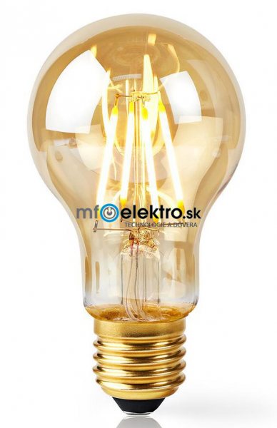 NEDIS Wi-Fi chytrá LED žárovka s vláknem/ E27/ A60/ 5W/ 230V/ 500lm/ 2200K/ teplá bílá/ stmívatelná/ zlatá