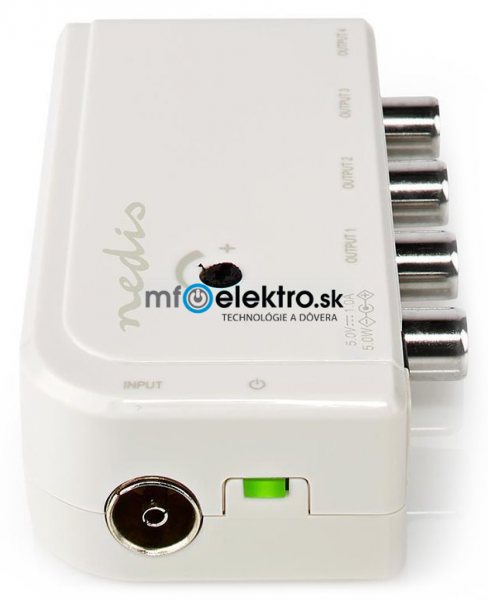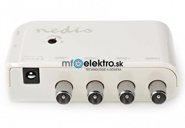 Satelitná technika NEDIS zesilovač CATV/ maximální zesílení 10 dB/ 50-694 MHz/ 4 výstupy/ konektor IEC/ bílý