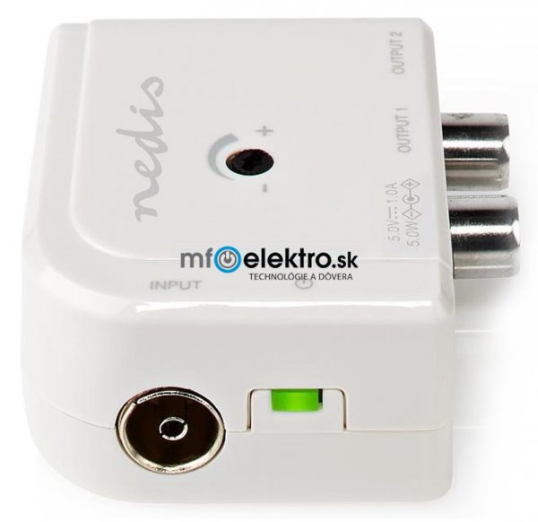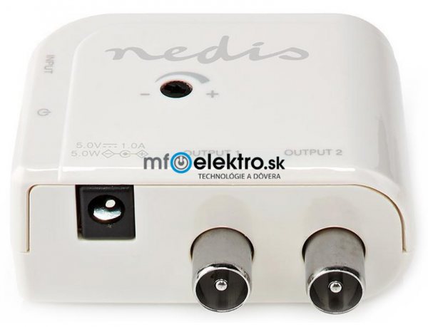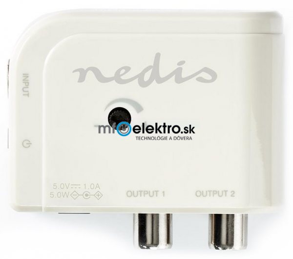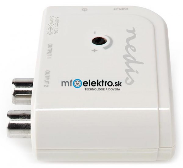 Satelitná technika NEDIS zesilovač CATV/ maximální zesílení 15 dB/ 50-694 MHz/ 2 výstupy/ konektor IEC/ bílý