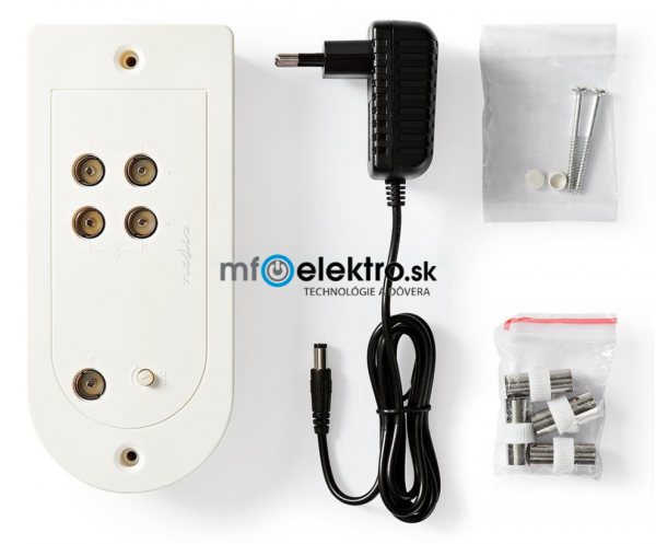 Anténa na TV NEDIS zesilovač CATV/ maximální zesílení 20 dB/ 40–862 MHz/ 4 výstupy/ konektor IEC/ bílý