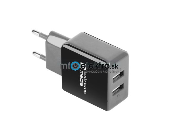 Výkonná a kompaktní nabíječka se dvěma porty USB a maximálním výkonem 2,1A, určená pro všechny typy mobilních zařízení.